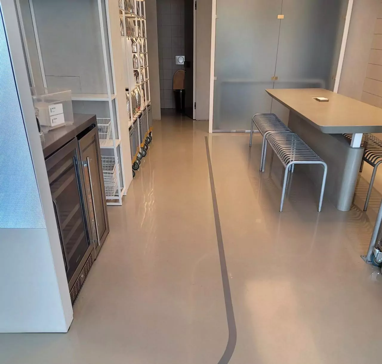 - Эпоксидные. Устойчивы к влаге, отличаются повышенной прочностью, но по эстетичности уступают полиуретановым полам. Эпоксидные покрытия в ресторанах используют в основном в технологических зонах – на входах, в подсобных помещениях;