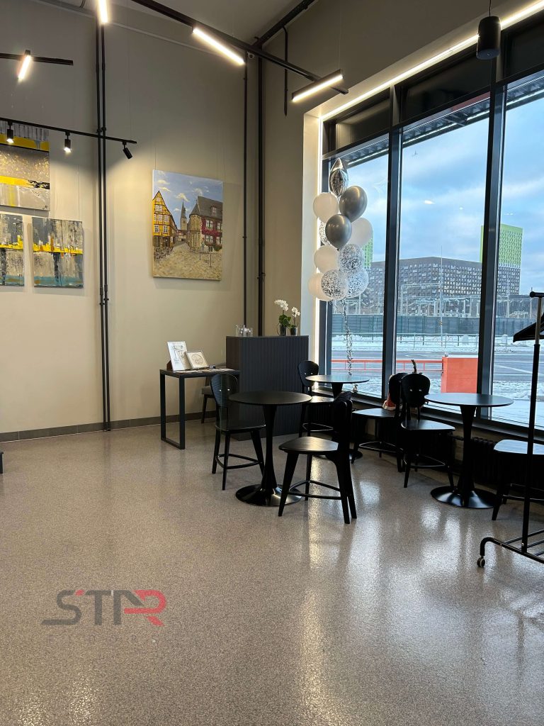 Наше покрытие стало неотъемлемой частью интерьера кафе «Холст», подчеркнув его уникальность и усилив функциональность. Теперь это пространство идеально подходит для отдыха, творчества и встреч с искусством.