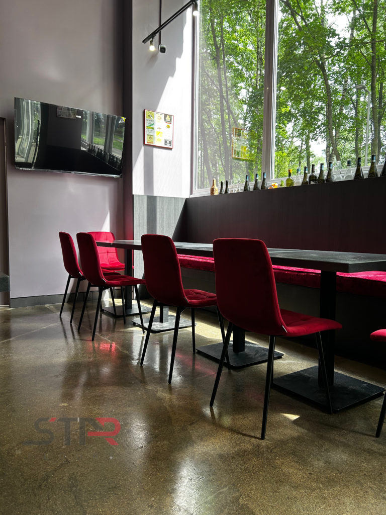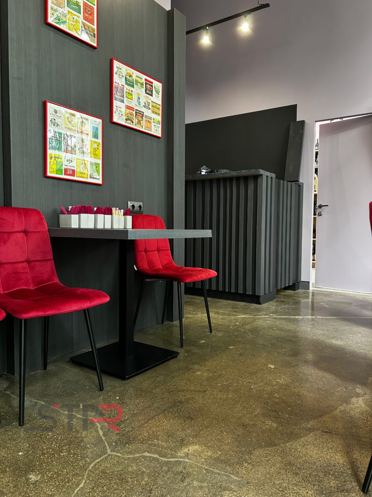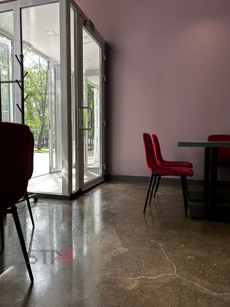 В рамках проекта для кафе Wine была выполнена обработка бетонного основания с нанесением полимерной защитной пропитки.