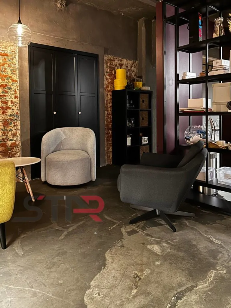 Выполненное покрытие подчеркивает современный стиль офиса, создавая комфортное и эстетичное рабочее пространство.