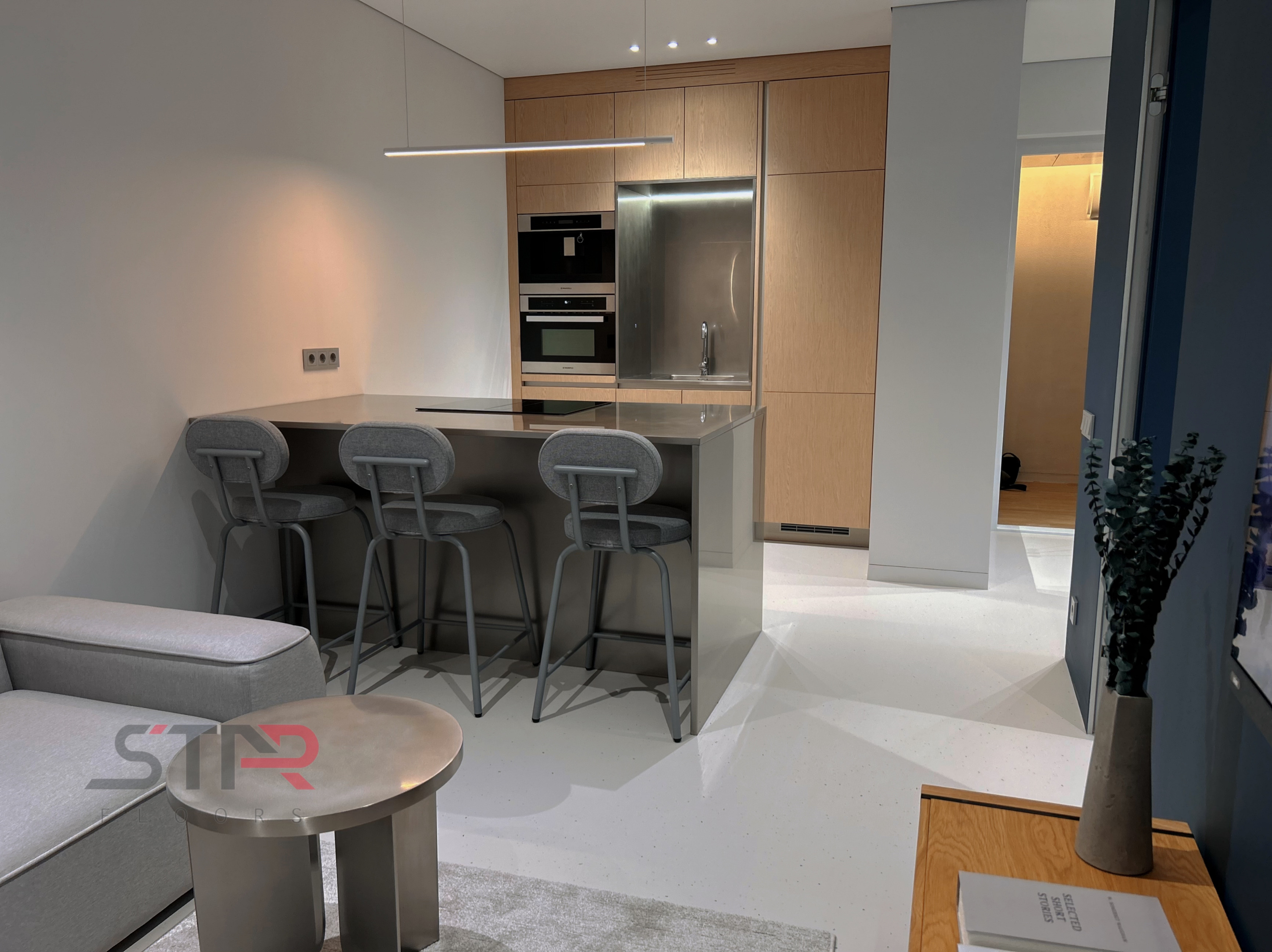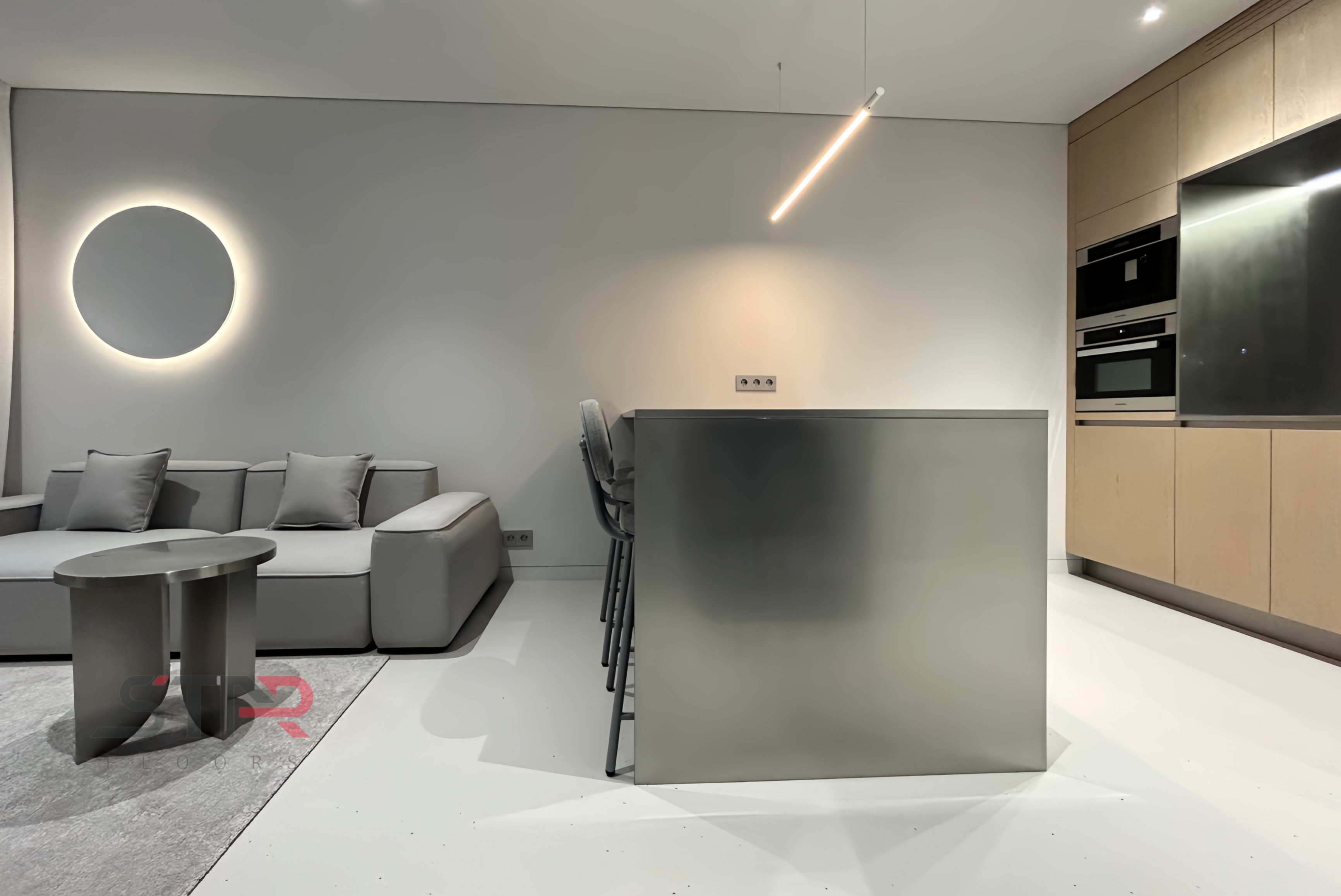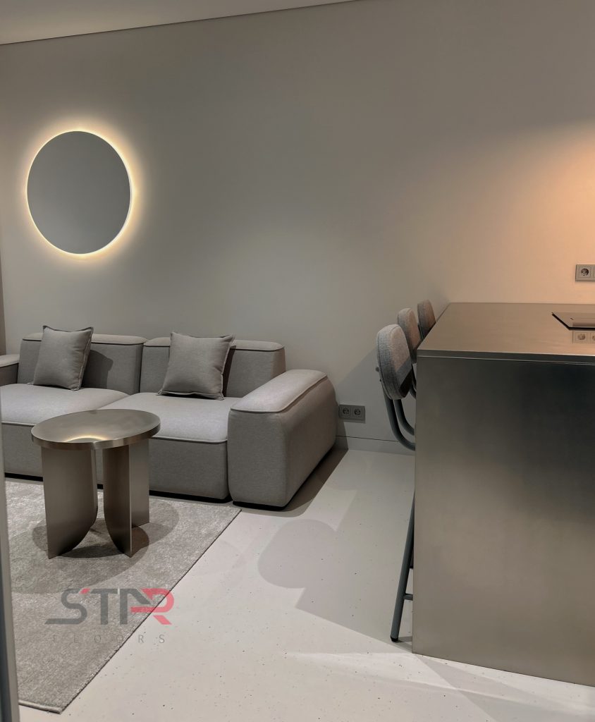 Клиент получил монолитное покрытие, которое органично вписалось в современный интерьер студии, сочетая практичность премиальных материалов и визуальную лаконичность.